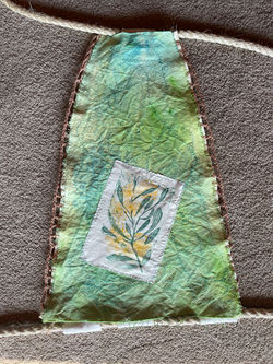 ![]() Eucalyptus FlowersLino prints on cotton. Framed by Lisa Conolly with cotton sheeting and crochet edging. | ![]() Lino print added as fabric collage on ink dyed canvas by Lisa Conolly |